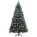 Create a festive atmosphere with this 7ft artificial Christmas tree featuring snowy pine tips and decorative pinecones. Its bare design lets you add your own lights and ornaments, while the sturdy metal base ensures stability. Perfect for home, office, or classroom holiday décor, this flame-retardant plastic tree is safe, durable, and ready for seasonal celebrations.